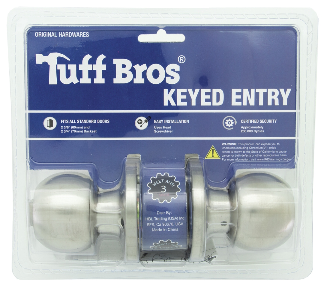 Tuff Bros Satin Nickel Keyed Entry Lock. Ball Knob Design